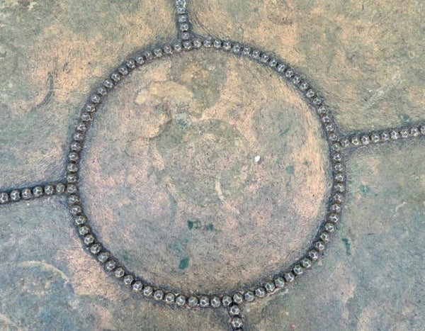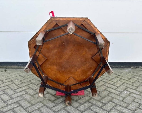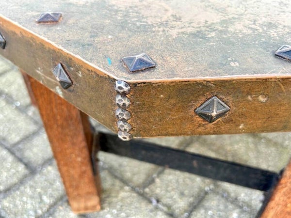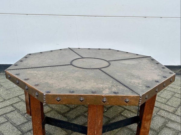 Acht-kantige Salontafel Met Een Volledig Met Koper Beslagen Tafelblad,