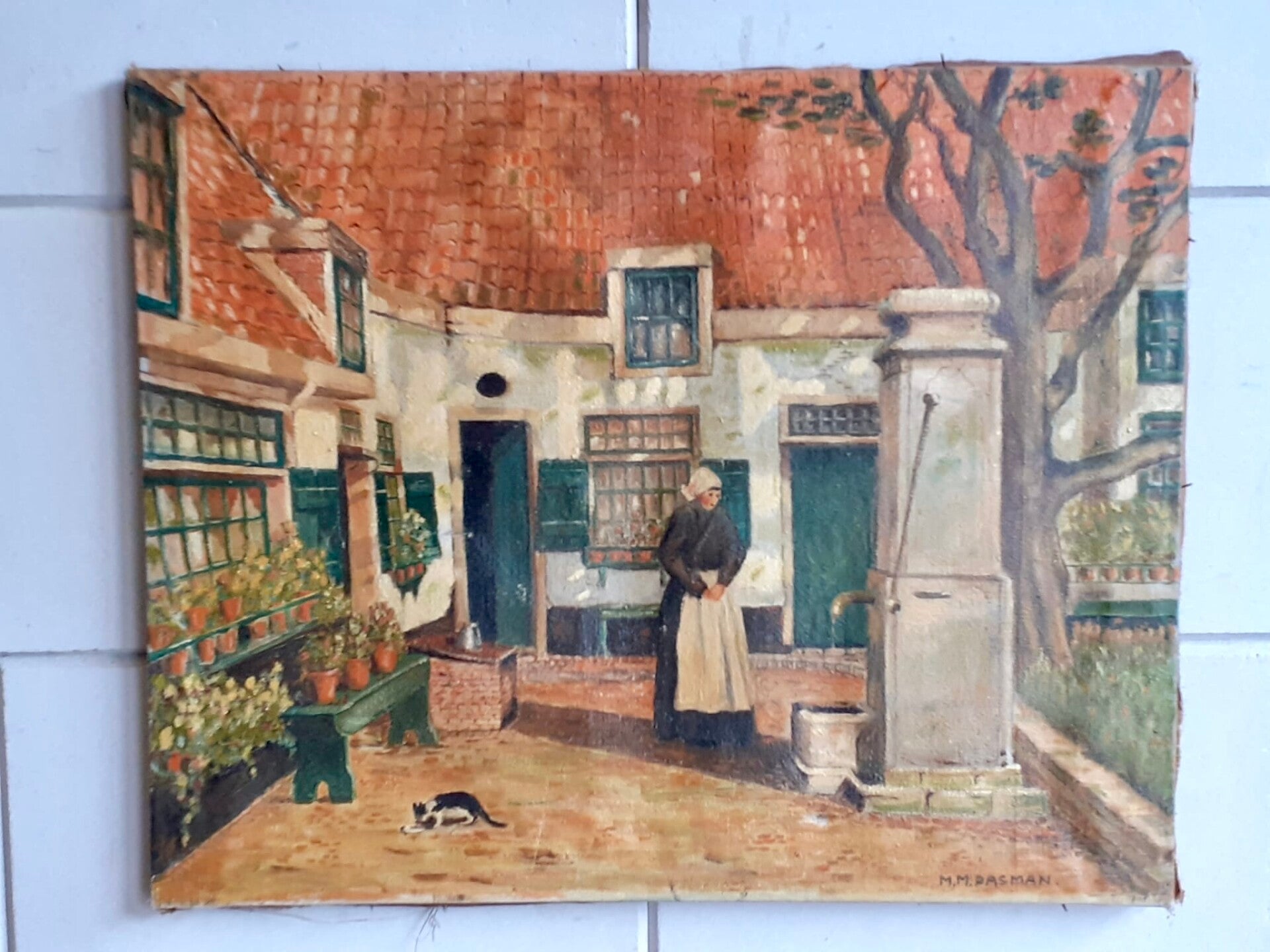 Schilderij Binnenpleintje Met Waterpomp