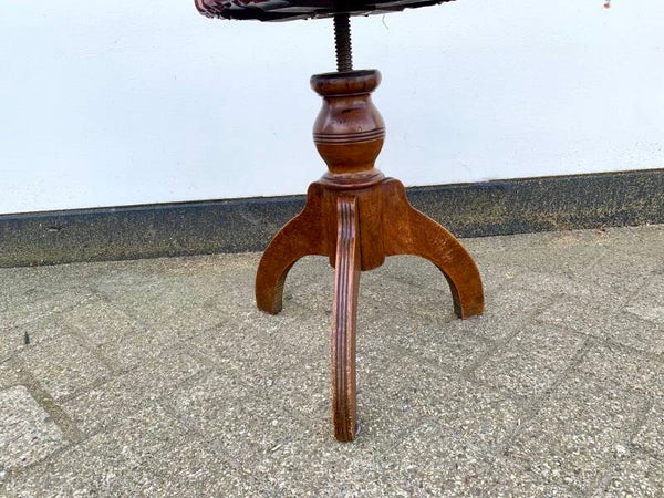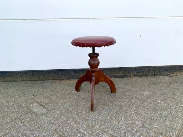 Zithoogte is verstelbaar door de ronde met leer beklede zitting links- of rechtsom te draaien.