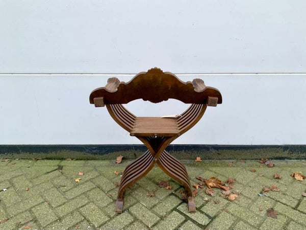 Eikenhouten Armstoel met Ramskoppen aan beide armleuningen.